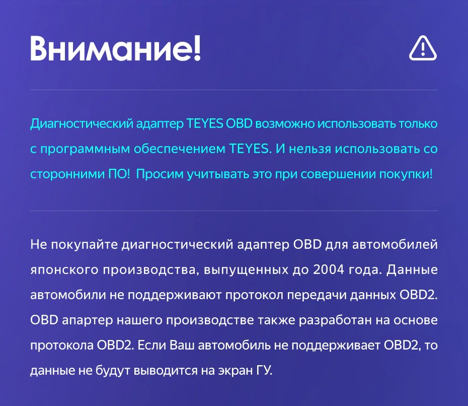 Обратите внимание - сканер работает только с автомагнитолами Teyes и не работает с магнитолами других производителей.