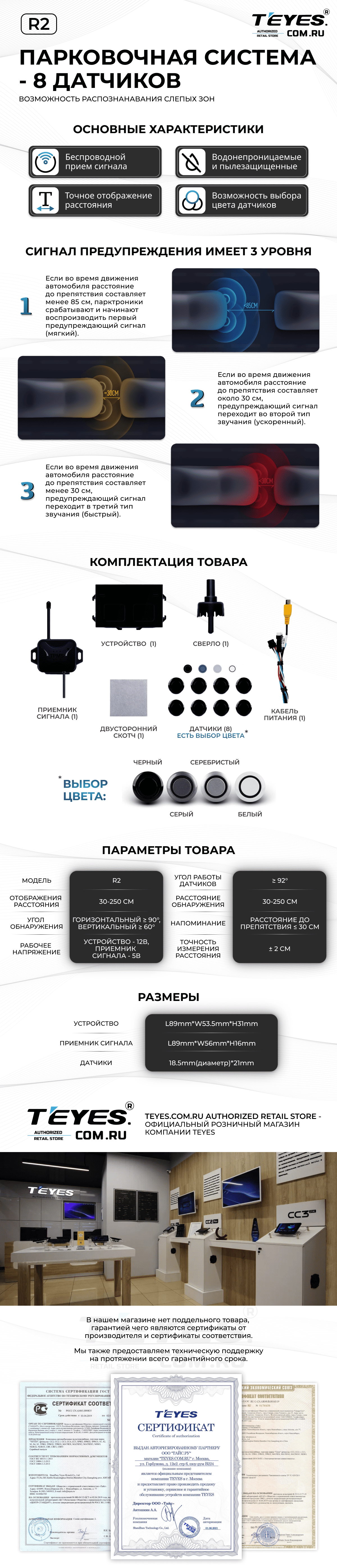 Передние и задние парктроники Teyes R2 для CC3 / CC2 Plus / SPRO Plus / TPRO2 (Белые) 8-датчиков - купить всего за 19 900 руб. в интернет-магазине в Перми Teyes.com.ru. ✓ Самый лучший выбор мультимедиа ✓ Лучшая замена штатному ГУ ✓ Тел. +7 (800) 775-31-74