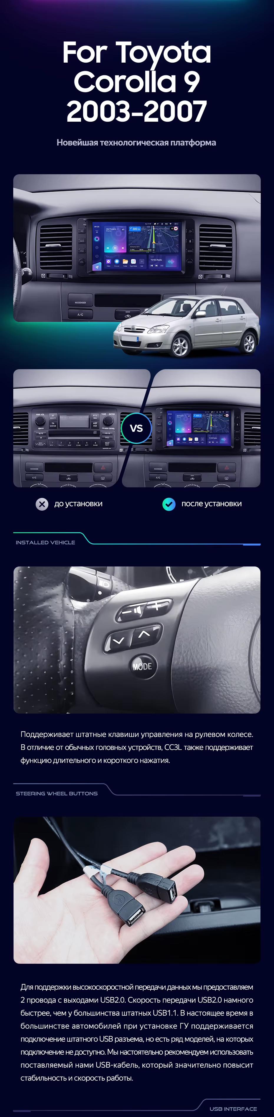 Переходная рамка Toyota Corolla 9 E120 E130 (2003-2007) (7") - купить всего за 3 800 руб. в интернет-магазине в Перми Teyes.com.ru. ✓ Самый лучший выбор мультимедиа ✓ Лучшая замена штатному ГУ ✓ Тел. +7 (800) 775-31-74