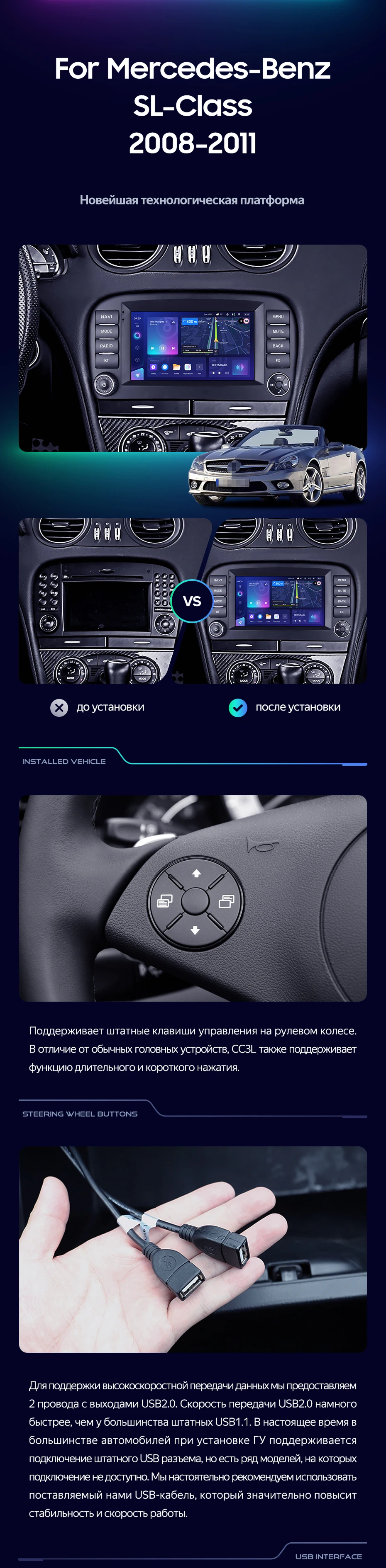 Переходная рамка Mercedes-Benz SL-Class R230 (2008-2011) (7") - купить всего за 7 000 руб. в интернет-магазине в Перми Teyes.com.ru. ✓ Самый лучший выбор мультимедиа ✓ Лучшая замена штатному ГУ ✓ Тел. +7 (800) 775-31-74