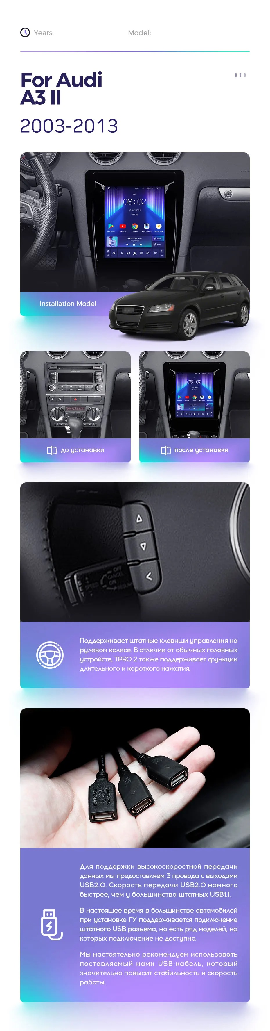 Штатная магнитола Tesla style Teyes TPRO 2 4/64 Audi A3 2 8P (2003-2013) - купить всего за 56 600 руб. в интернет-магазине в Перми Teyes.com.ru. ✓ Самый лучший выбор мультимедиа ✓ Лучшая замена штатному ГУ ✓ Тел. +7 (800) 775-31-74
