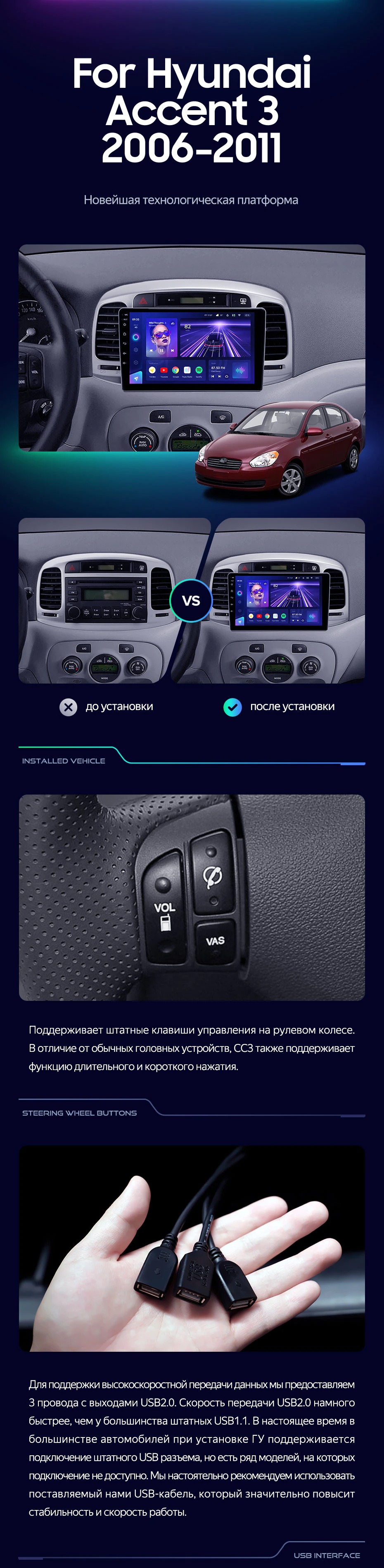 Штатная магнитола Teyes CC3 2K 4/32 Hyundai Accent 3 (2006-2011) - купить всего за 44 900 руб. в интернет-магазине в Перми Teyes.com.ru. ✓ Самый лучший выбор мультимедиа ✓ Лучшая замена штатному ГУ ✓ Тел. +7 (800) 775-31-74