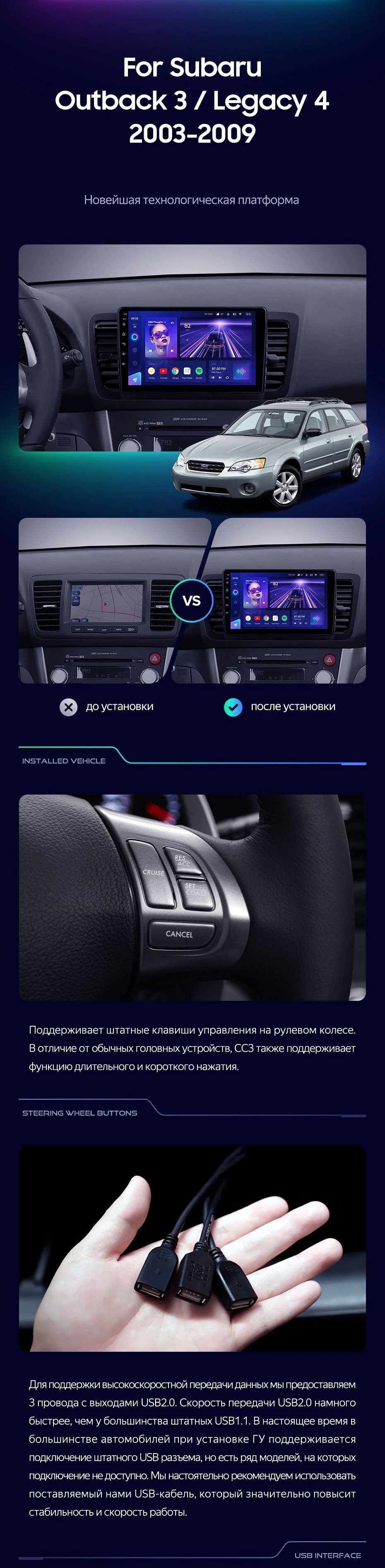 Штатная магнитола Teyes CC3 2K 4/32 Subaru Legacy 4 (2003-2009) - купить всего за 45 000 руб. в интернет-магазине в Перми Teyes.com.ru. ✓ Самый лучший выбор мультимедиа ✓ Лучшая замена штатному ГУ ✓ Тел. +7 (800) 775-31-74