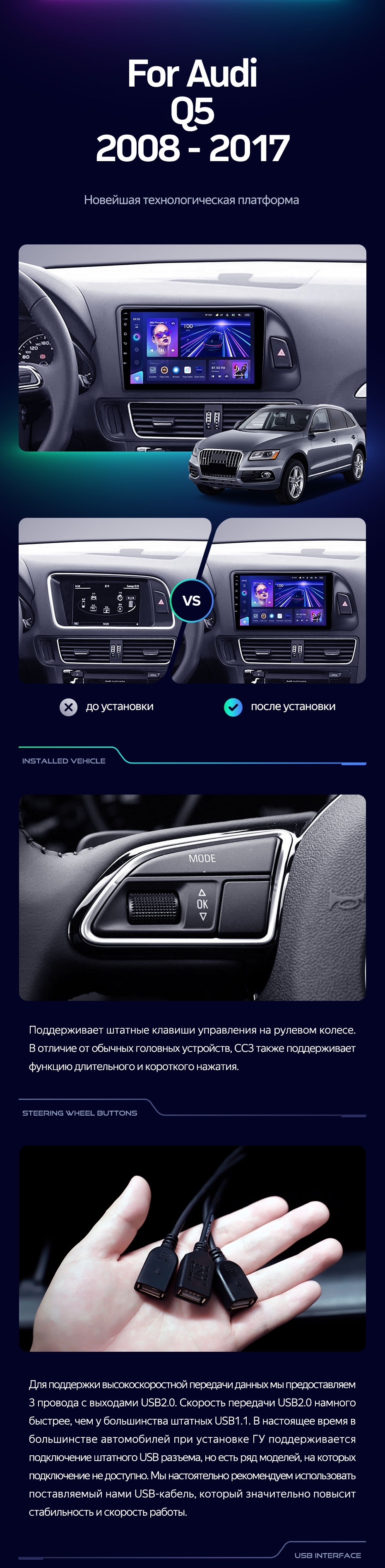 Штатная магнитола Teyes CC3 2K 360 6/128 Audi Q5 8R (2008-2017) Тип-A (13") - купить всего за 65 200 руб. в интернет-магазине в Перми Teyes.com.ru. ✓ Самый лучший выбор мультимедиа ✓ Лучшая замена штатному ГУ ✓ Тел. +7 (800) 775-31-74