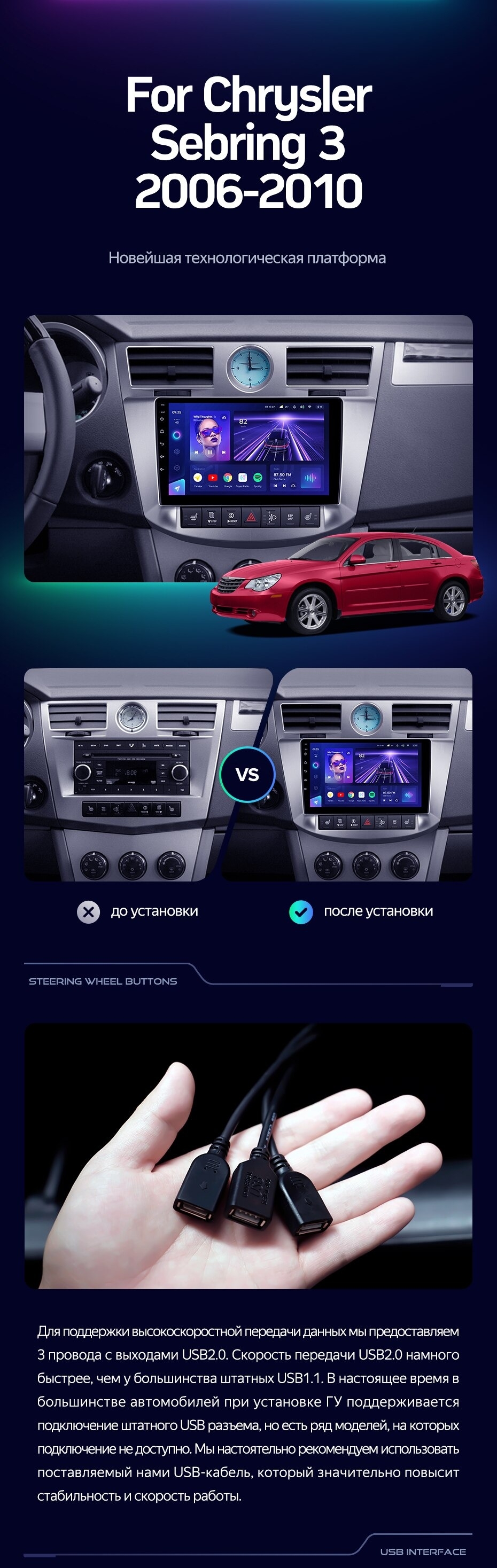 Штатная магнитола Teyes CC3 2K 360 6/128 Chrysler Sebring 3 JS (2006-2010) (13") - купить всего за 63 900 руб. в интернет-магазине в Перми Teyes.com.ru. ✓ Самый лучший выбор мультимедиа ✓ Лучшая замена штатному ГУ ✓ Тел. +7 (800) 775-31-74