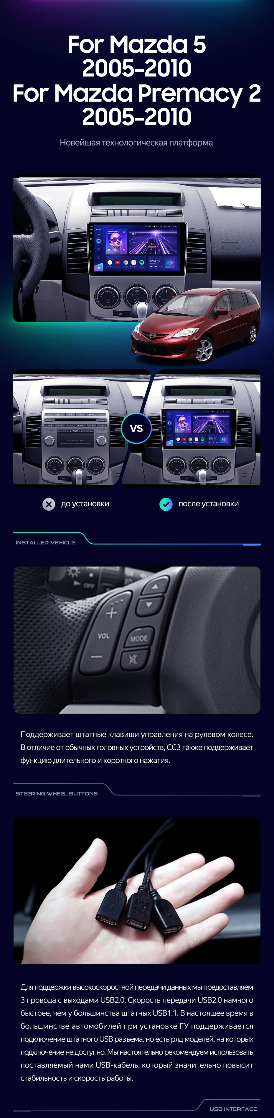 Штатная магнитола Teyes CC3 2K 4/32 Mazda Premacy 2 (2005-2010) - купить всего за 39 900 руб. в интернет-магазине в Перми Teyes.com.ru. ✓ Самый лучший выбор мультимедиа ✓ Лучшая замена штатному ГУ ✓ Тел. +7 (800) 775-31-74
