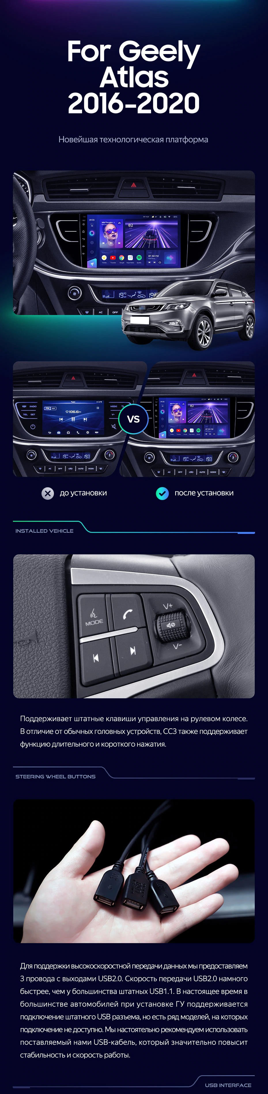 Заказал головное устройство тиайс сс3 2к на Джили атлас 2020 г. в. комплектации люкс, так, как спустя 3,5 года штатное гу вышло из строя. Продавец все четко пояснил и оперативно отправил мне товар через СДЕК. ГУ встало четко. Круговой обзор работает, с кнопок на руле функционирует, все функции работают!!! Переживал, что значки на экране будут заходить за рамку. Да, действительно часть значков заходит, но это не критично. Они все видны и я использую их без проблем. Звучание и опции просто на высоте!!!!!!. Рекомендую как товар, так и продавца. Да, кстатии, купил дополнительно выносной микрофон и видеорегистратор. Всё ОК!!! Большое спасибо!!!
