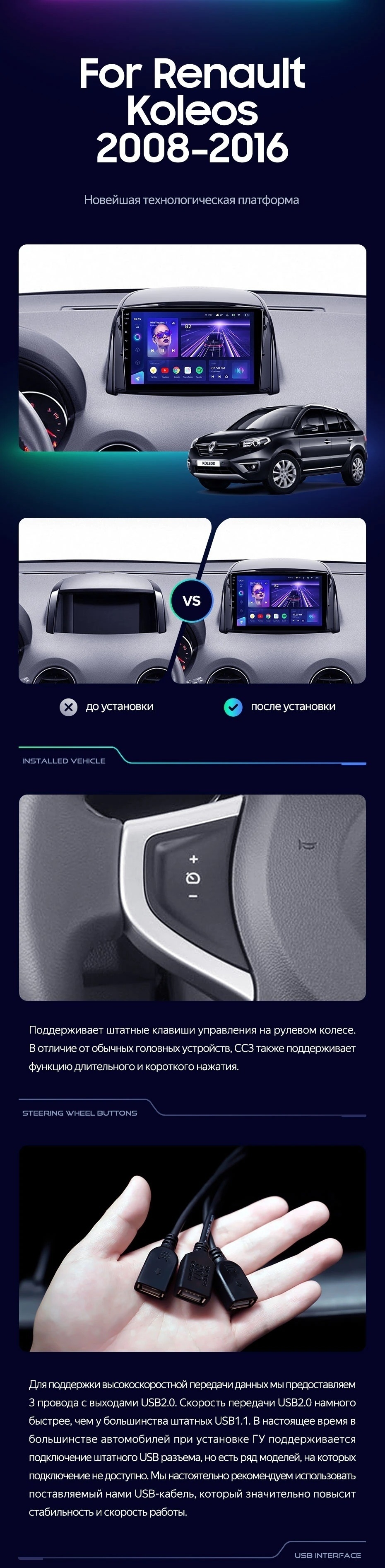 Штатная магнитола Teyes CC3 2K 4/64 Renault Koleos (2008-2016) Тип-A - купить всего за 49 680 руб. в интернет-магазине в Перми Teyes.com.ru. ✓ Самый лучший выбор мультимедиа ✓ Лучшая замена штатному ГУ ✓ Тел. +7 (800) 775-31-74