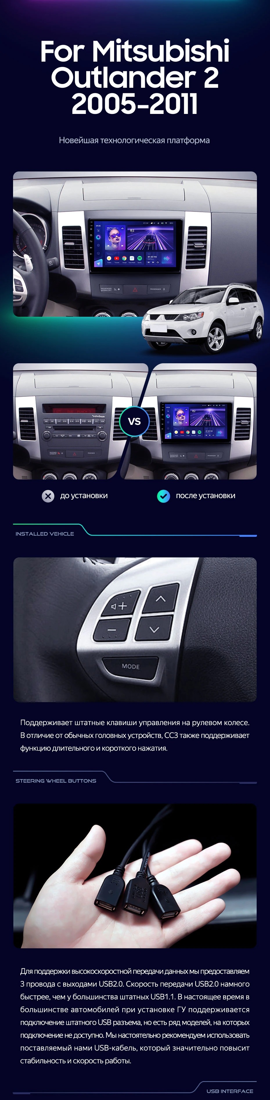 Штатная магнитола Teyes CC3 4/32 Mitsubishi Outlander 2 (2005-2011) Тип-B - купить всего за 36 190 руб. в интернет-магазине в Перми Teyes.com.ru. ✓ Самый лучший выбор мультимедиа ✓ Лучшая замена штатному ГУ ✓ Тел. +7 (800) 775-31-74