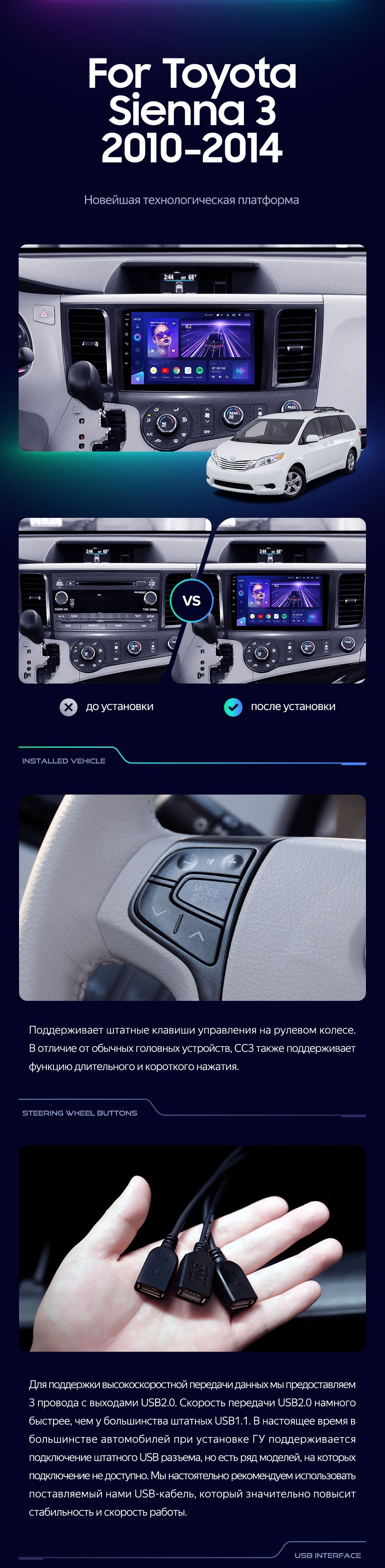 Штатная магнитола Teyes CC3 4/32 Toyota Sienna 3 XL30 (2010-2014) - купить всего за 40 500 руб. в интернет-магазине в Перми Teyes.com.ru. ✓ Самый лучший выбор мультимедиа ✓ Лучшая замена штатному ГУ ✓ Тел. +7 (800) 775-31-74