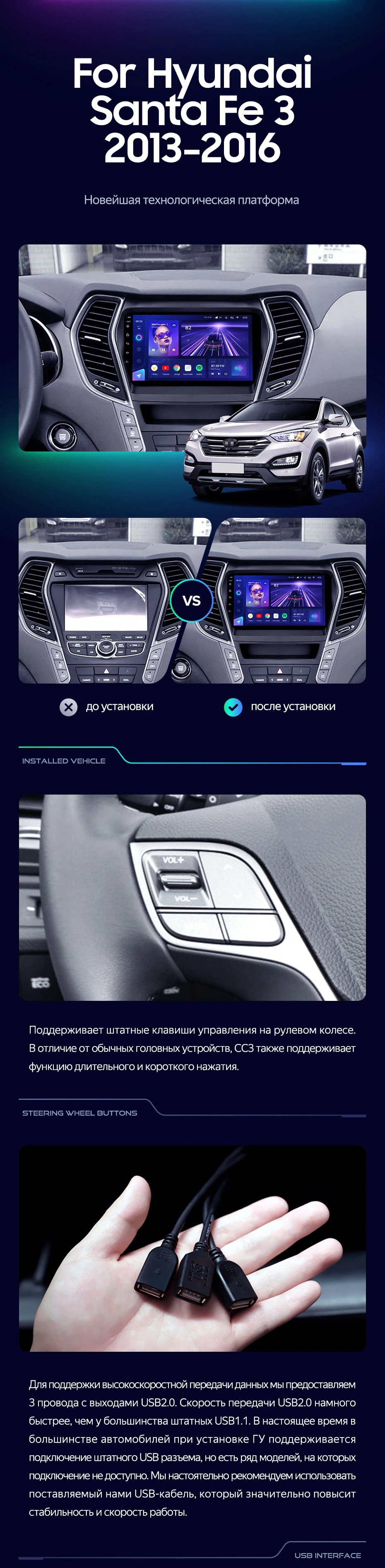Штатная магнитола Teyes CC3 6/128 Hyundai Santa Fe 3 (2013-2016) Тип-A - купить всего за 45 200 руб. в интернет-магазине в Перми Teyes.com.ru. ✓ Самый лучший выбор мультимедиа ✓ Лучшая замена штатному ГУ ✓ Тел. +7 (800) 775-31-74