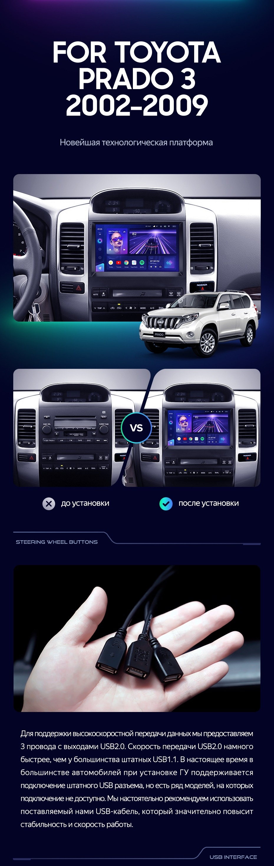 Штатная магнитола Teyes CC3 6/128 Toyota Land Cruiser Prado 120 (2002-2009) F3 - купить всего за 45 000 руб. в интернет-магазине в Перми Teyes.com.ru. ✓ Самый лучший выбор мультимедиа ✓ Лучшая замена штатному ГУ ✓ Тел. +7 (800) 775-31-74