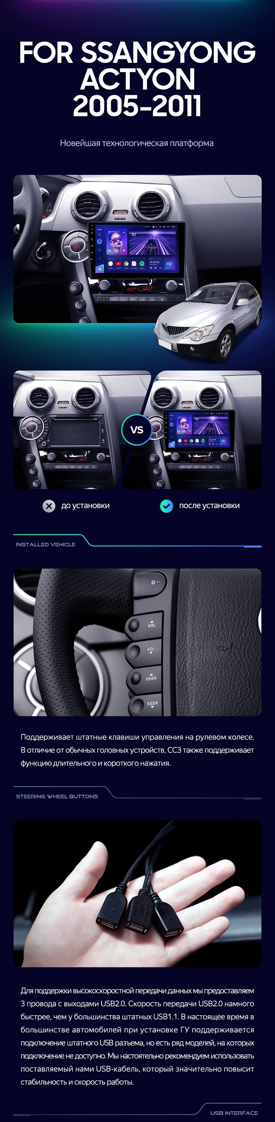 Штатная магнитола Teyes CC3L 4/32 SsangYong Actyon C100 (2005-2011) - купить всего за 25 600 руб. в интернет-магазине в Перми Teyes.com.ru. ✓ Самый лучший выбор мультимедиа ✓ Лучшая замена штатному ГУ ✓ Тел. +7 (800) 775-31-74
