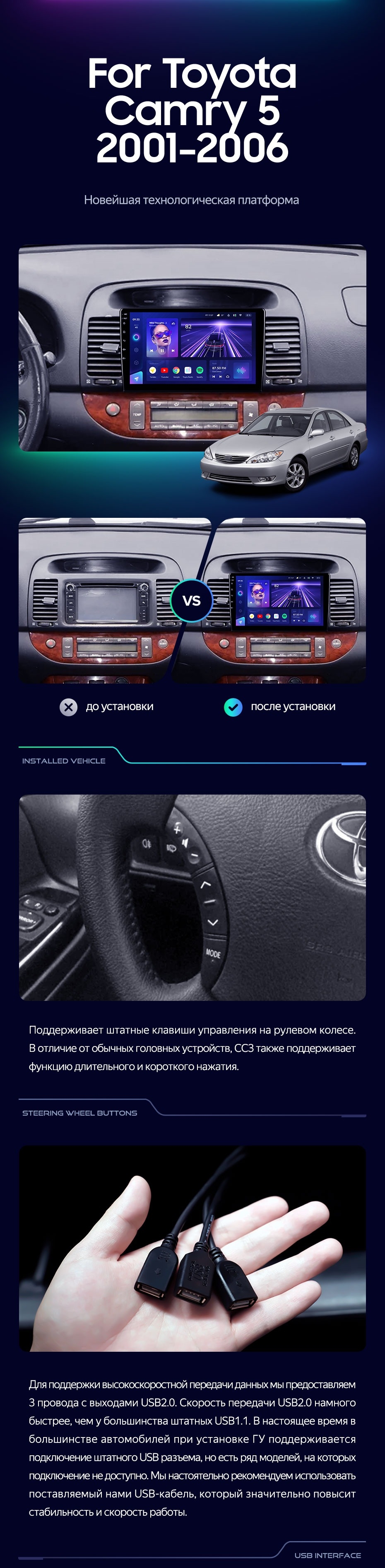 Штатная магнитола Teyes CC3L 4/32 Toyota Camry 5 XV 30 (2001-2006) Тип-B - купить всего за 26 600 руб. в интернет-магазине в Перми Teyes.com.ru. ✓ Самый лучший выбор мультимедиа ✓ Лучшая замена штатному ГУ ✓ Тел. +7 (800) 775-31-74