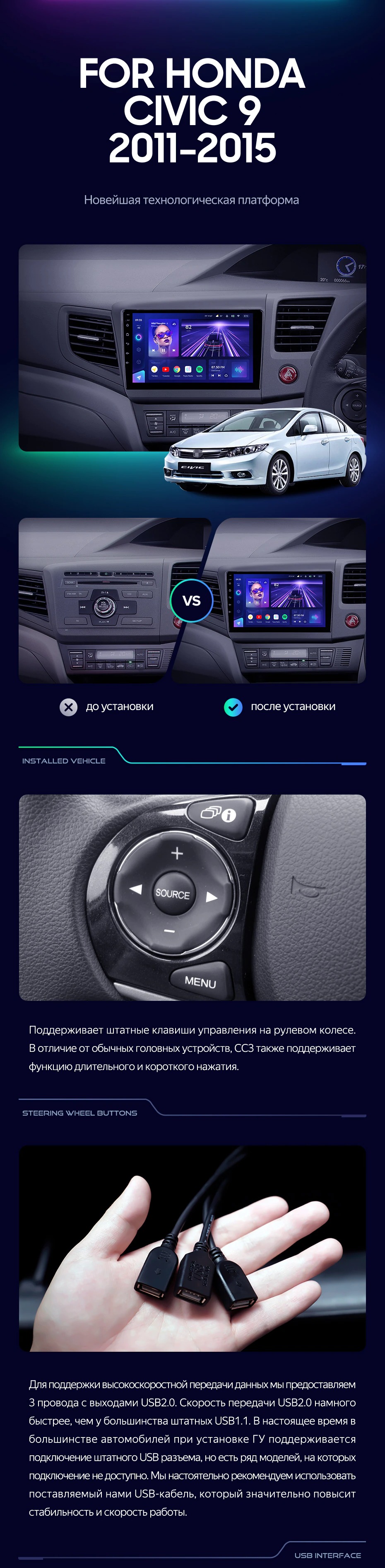 Штатная магнитола Teyes CC3L 4/64 Honda Civic 9 FB FK FD (2011-2015) - купить всего за 31 900 руб. в интернет-магазине в Перми Teyes.com.ru. ✓ Самый лучший выбор мультимедиа ✓ Лучшая замена штатному ГУ ✓ Тел. +7 (800) 775-31-74
