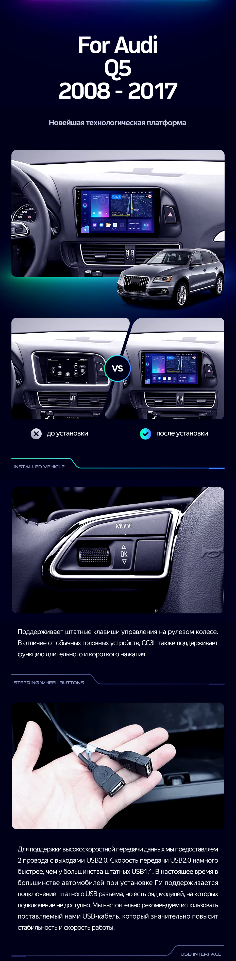 Штатная магнитола Teyes CC3L WiFi 2/32 Audi Q5 8R (2008-2017) Тип-A - купить всего за 25 550 руб. в интернет-магазине в Перми Teyes.com.ru. ✓ Самый лучший выбор мультимедиа ✓ Лучшая замена штатному ГУ ✓ Тел. +7 (800) 775-31-74