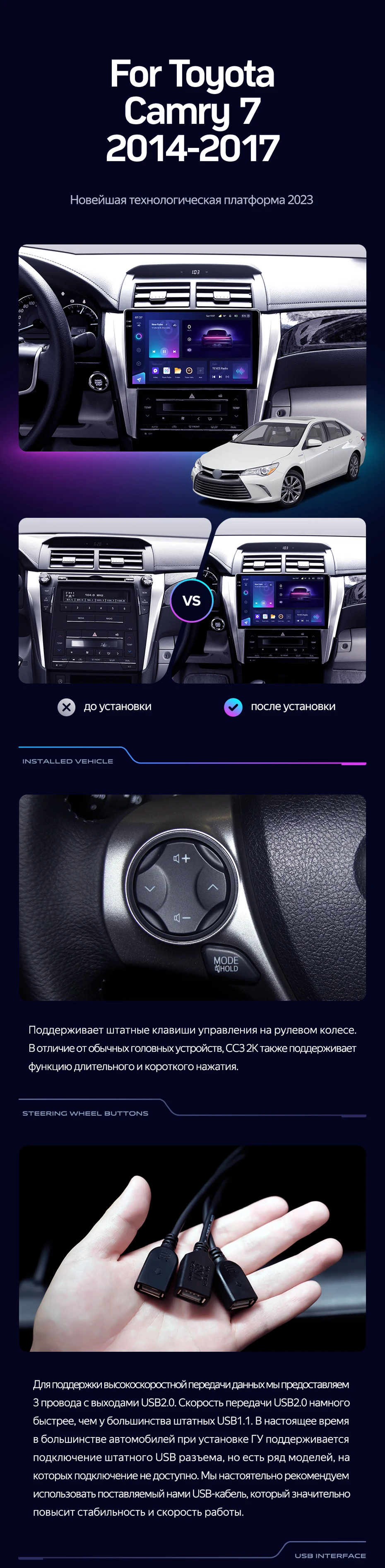 Штатная магнитола Teyes CC3L WiFi 2/32 Toyota Camry 7 XV 50 55 (2014-2017) F4 - купить всего за 13 600 руб. в интернет-магазине в Перми Teyes.com.ru. ✓ Самый лучший выбор мультимедиа ✓ Лучшая замена штатному ГУ ✓ Тел. +7 (800) 775-31-74