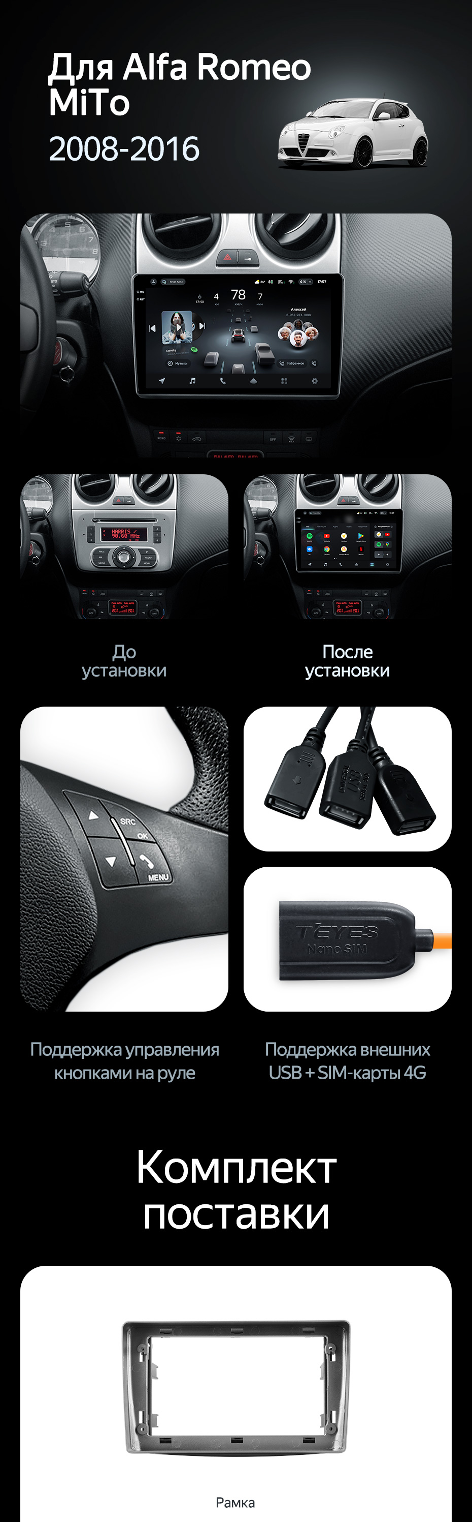 Штатная магнитола Teyes CC4 Pro 12/256 Alfa Romeo MiTo 955 (2008-2016) - купить всего за 76 430 руб. в интернет-магазине в Перми Teyes.com.ru. ✓ Самый лучший выбор мультимедиа ✓ Лучшая замена штатному ГУ ✓ Тел. +7 (800) 775-31-74
