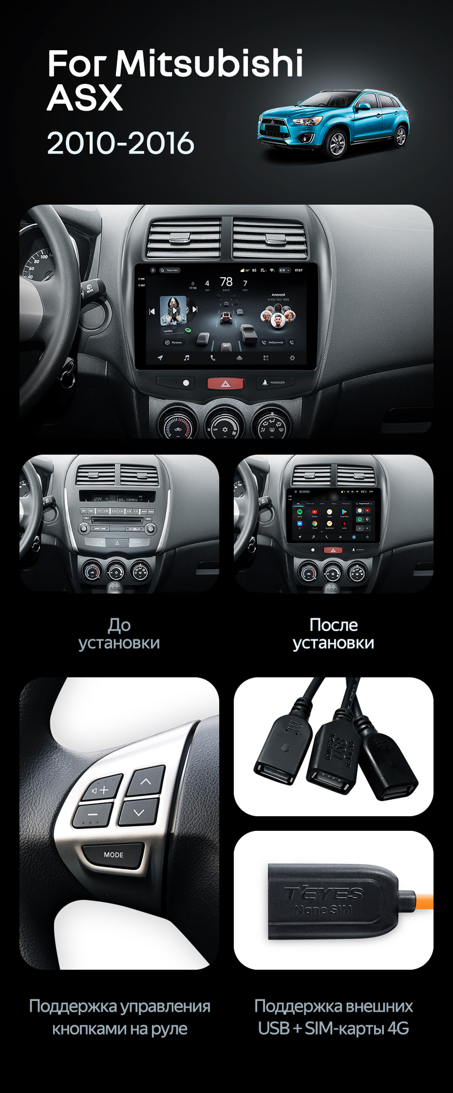 Штатная магнитола Teyes CC4 Pro 12/256 Mitsubishi ASX 1 (2010-2016) Тип-A - купить всего за 73 000 руб. в интернет-магазине в Перми Teyes.com.ru. ✓ Самый лучший выбор мультимедиа ✓ Лучшая замена штатному ГУ ✓ Тел. +7 (800) 775-31-74