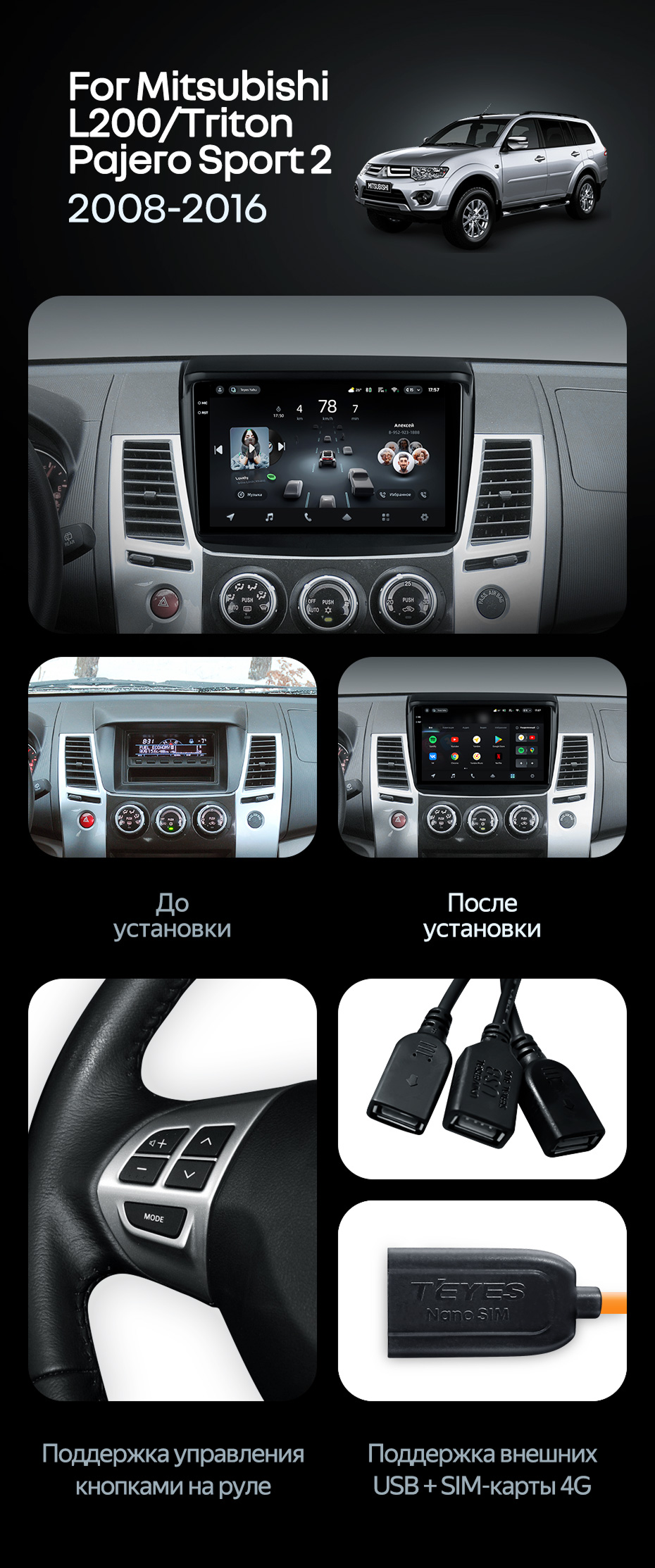 Штатная магнитола Teyes CC4 Pro 12/256 Mitsubishi L200 (2008-2016) - купить всего за 66 190 руб. в интернет-магазине в Перми Teyes.com.ru. ✓ Самый лучший выбор мультимедиа ✓ Лучшая замена штатному ГУ ✓ Тел. +7 (800) 775-31-74