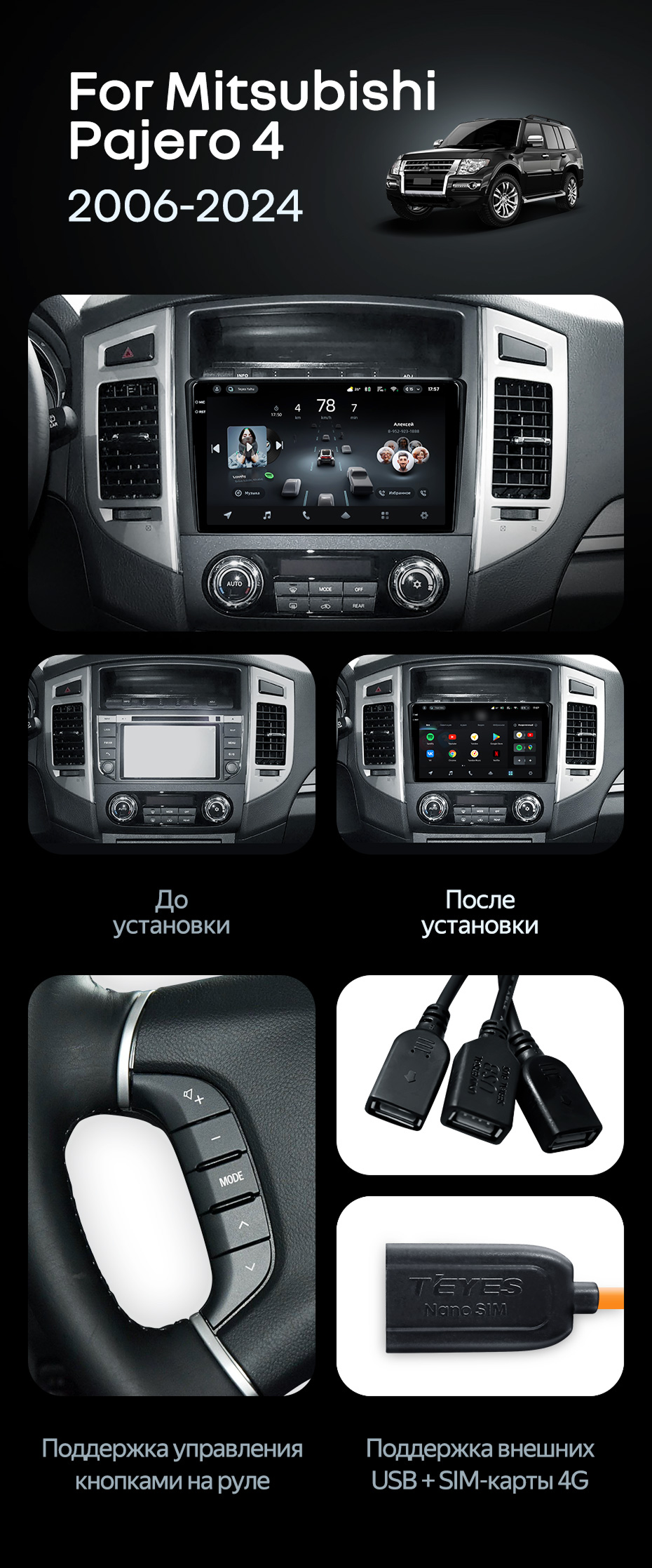 Штатная магнитола Teyes CC4 Pro 360 8/128 Mitsubishi Pajero 4 V80 V90 (2006-2024) - купить всего за 83 080 руб. в интернет-магазине в Перми Teyes.com.ru. ✓ Самый лучший выбор мультимедиа ✓ Лучшая замена штатному ГУ ✓ Тел. +7 (800) 775-31-74