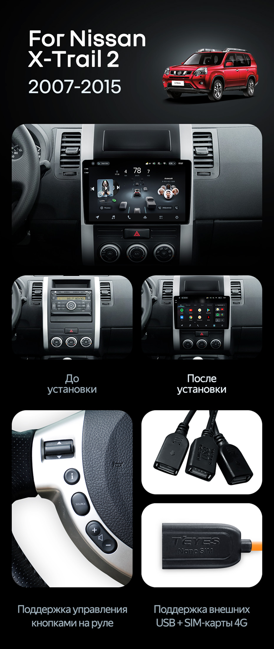 Штатная магнитола Teyes CC4 Pro 360 8/128 Nissan X-Trail T31 (2007-2015) - купить всего за 85 940 руб. в интернет-магазине в Перми Teyes.com.ru. ✓ Самый лучший выбор мультимедиа ✓ Лучшая замена штатному ГУ ✓ Тел. +7 (800) 775-31-74