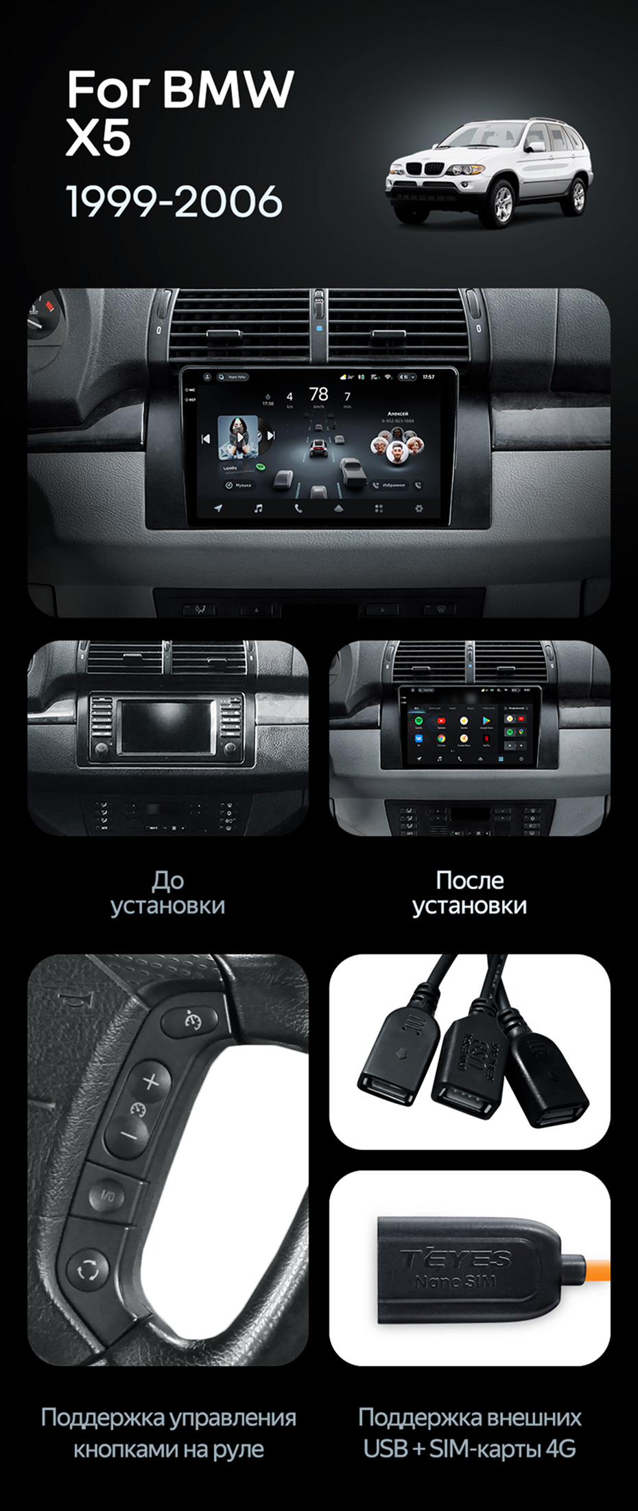 Штатная магнитола Teyes CC4 Pro 8/128 BMW X5 E39 E53 (1999-2006) - купить всего за 65 420 руб. в интернет-магазине в Перми Teyes.com.ru. ✓ Самый лучший выбор мультимедиа ✓ Лучшая замена штатному ГУ ✓ Тел. +7 (800) 775-31-74