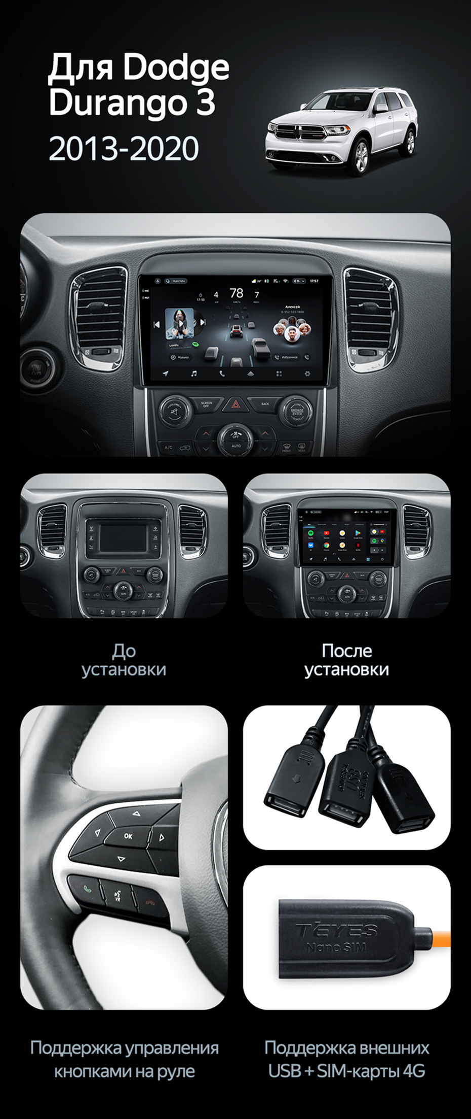 Штатная магнитола Teyes CC4 Pro 8/128 Dodge Durango 3 (2013-2020) - купить всего за 66 870 руб. в интернет-магазине в Перми Teyes.com.ru. ✓ Самый лучший выбор мультимедиа ✓ Лучшая замена штатному ГУ ✓ Тел. +7 (800) 775-31-74
