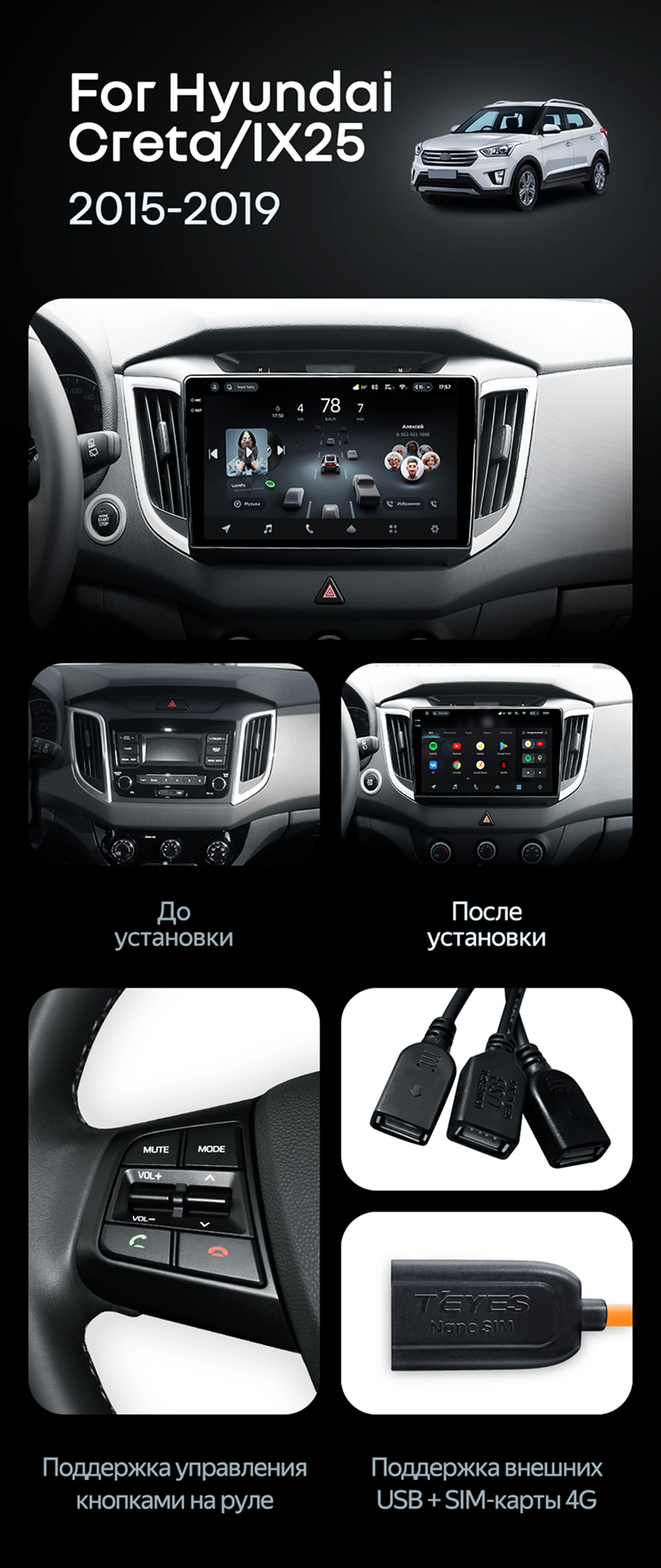 Штатная магнитола Teyes CC4 Pro 8/128 Hyundai Creta 1 (2015-2019) с кнопками - купить всего за 65 470 руб. в интернет-магазине в Перми Teyes.com.ru. ✓ Самый лучший выбор мультимедиа ✓ Лучшая замена штатному ГУ ✓ Тел. +7 (800) 775-31-74
