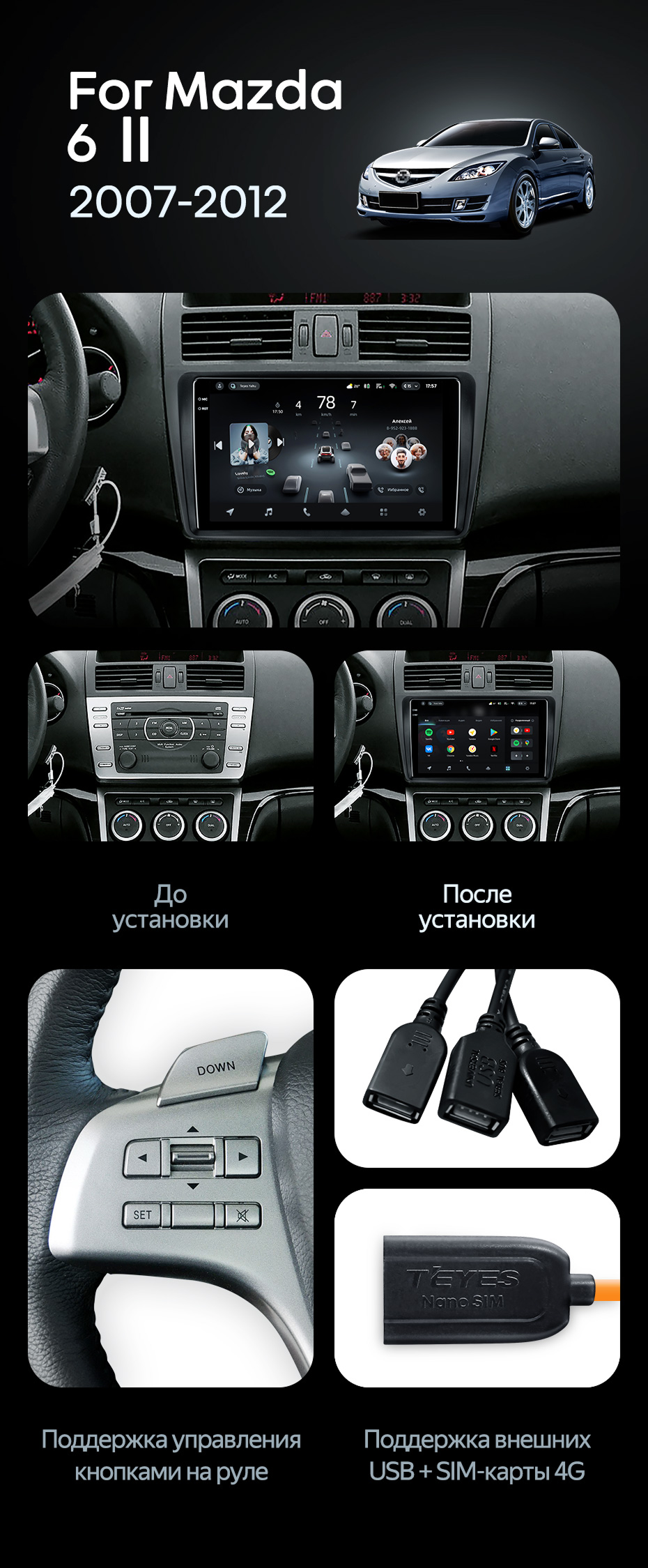 Штатная магнитола Teyes CC4 Pro 8/128 Mazda 6 2 GH (2007-2012) - купить всего за 64 270 руб. в интернет-магазине в Перми Teyes.com.ru. ✓ Самый лучший выбор мультимедиа ✓ Лучшая замена штатному ГУ ✓ Тел. +7 (800) 775-31-74
