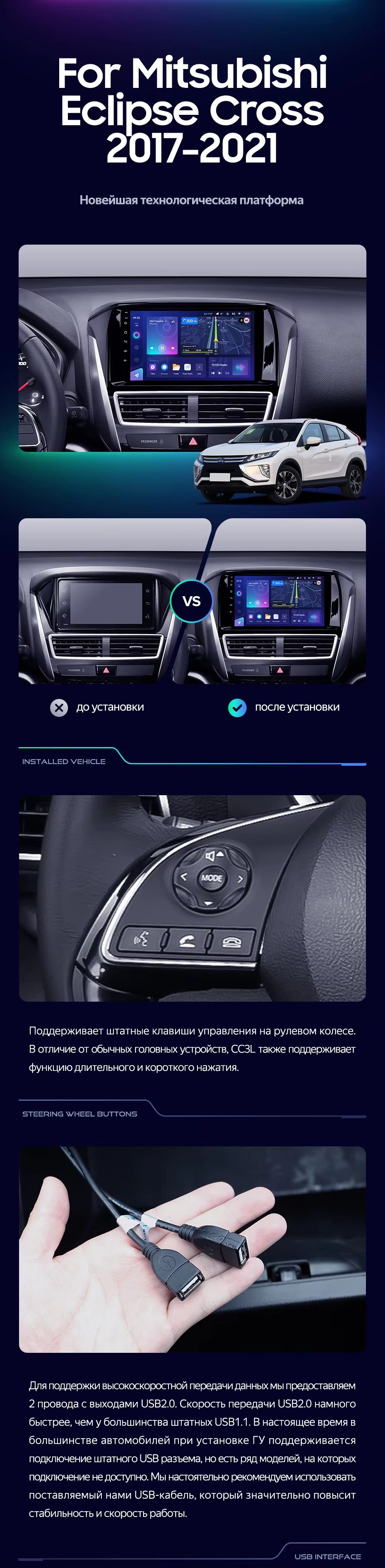 Штатная магнитола Teyes CC4 Pro 8/128 Mitsubishi Eclipse Cross 1 (2017-2021) F1 - купить всего за 64 900 руб. в интернет-магазине в Перми Teyes.com.ru. ✓ Самый лучший выбор мультимедиа ✓ Лучшая замена штатному ГУ ✓ Тел. +7 (800) 775-31-74