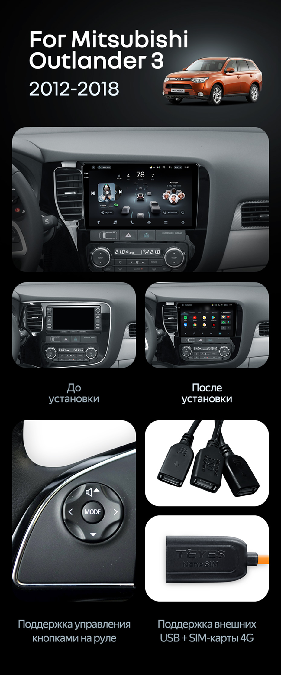 Штатная магнитола Teyes CC4 Pro 8/128 Mitsubishi Outlander 3 GF0W GG0W (2012-2018) Тип-B - купить всего за 65 570 руб. в интернет-магазине в Перми Teyes.com.ru. ✓ Самый лучший выбор мультимедиа ✓ Лучшая замена штатному ГУ ✓ Тел. +7 (800) 775-31-74