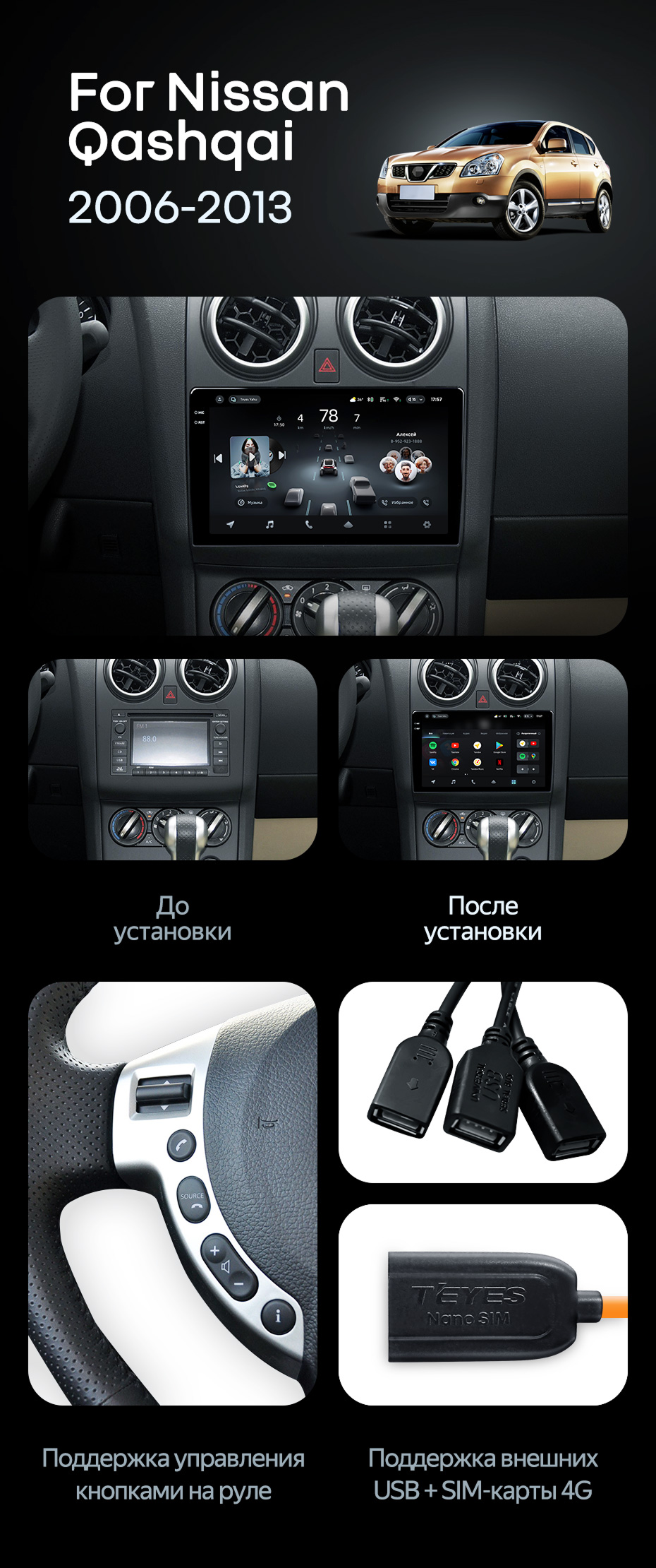 Штатная магнитола Teyes CC4 Pro 8/128 Nissan Qashqai 1 J10 (2006-2013) F1 - купить всего за 64 635 руб. в интернет-магазине в Перми Teyes.com.ru. ✓ Самый лучший выбор мультимедиа ✓ Лучшая замена штатному ГУ ✓ Тел. +7 (800) 775-31-74