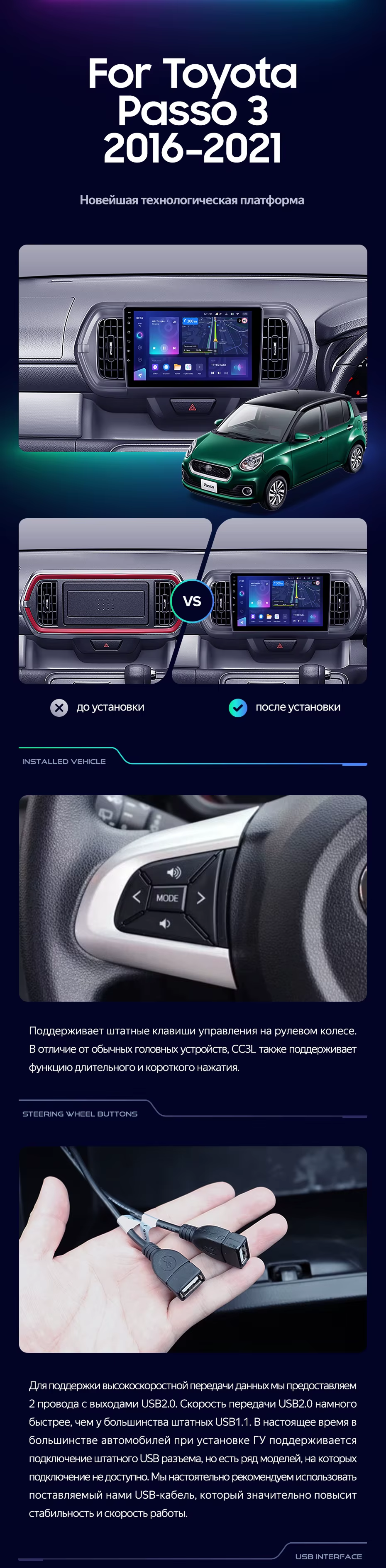 Штатная магнитола Teyes CC4L 6/64 Toyota Passo 3 (2016-2021) Правый руль - купить всего за 30 200 руб. в интернет-магазине в Перми Teyes.com.ru. ✓ Самый лучший выбор мультимедиа ✓ Лучшая замена штатному ГУ ✓ Тел. +7 (800) 775-31-74