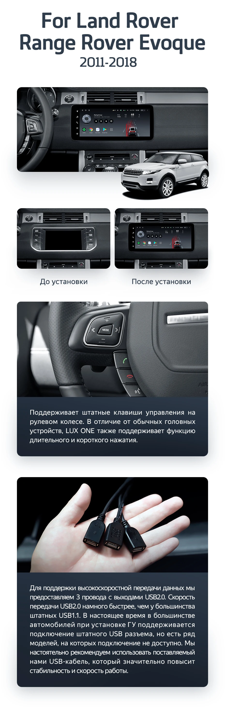 Штатная магнитола Teyes LUX ONE 360 6/128 Land Rover Range Rover Evoque (2011-2018) Тип-A - купить всего за 68 600 руб. в интернет-магазине в Перми Teyes.com.ru. ✓ Самый лучший выбор мультимедиа ✓ Лучшая замена штатному ГУ ✓ Тел. +7 (800) 775-31-74