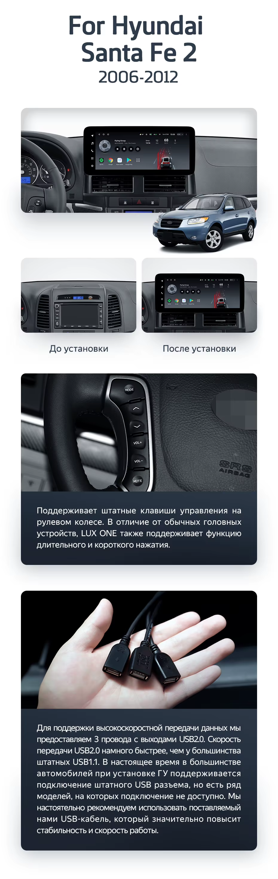 Штатная магнитола Teyes LUX ONE 6/128 Hyundai Santa Fe 2 (2006-2012) - купить всего за 50 500 руб. в интернет-магазине в Перми Teyes.com.ru. ✓ Самый лучший выбор мультимедиа ✓ Лучшая замена штатному ГУ ✓ Тел. +7 (800) 775-31-74