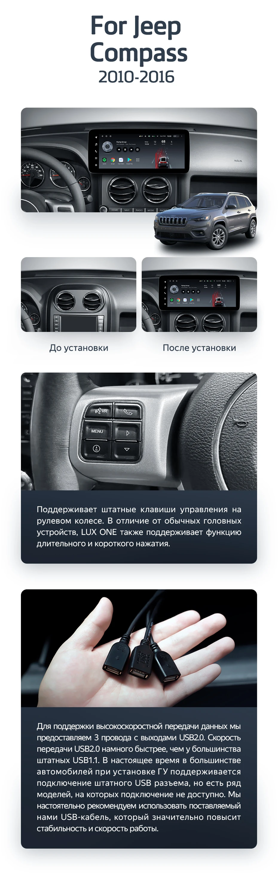 Штатная магнитола Teyes LUX ONE 6/128 Jeep Compass MK (2010-2016) - купить всего за 51 600 руб. в интернет-магазине в Перми Teyes.com.ru. ✓ Самый лучший выбор мультимедиа ✓ Лучшая замена штатному ГУ ✓ Тел. +7 (800) 775-31-74