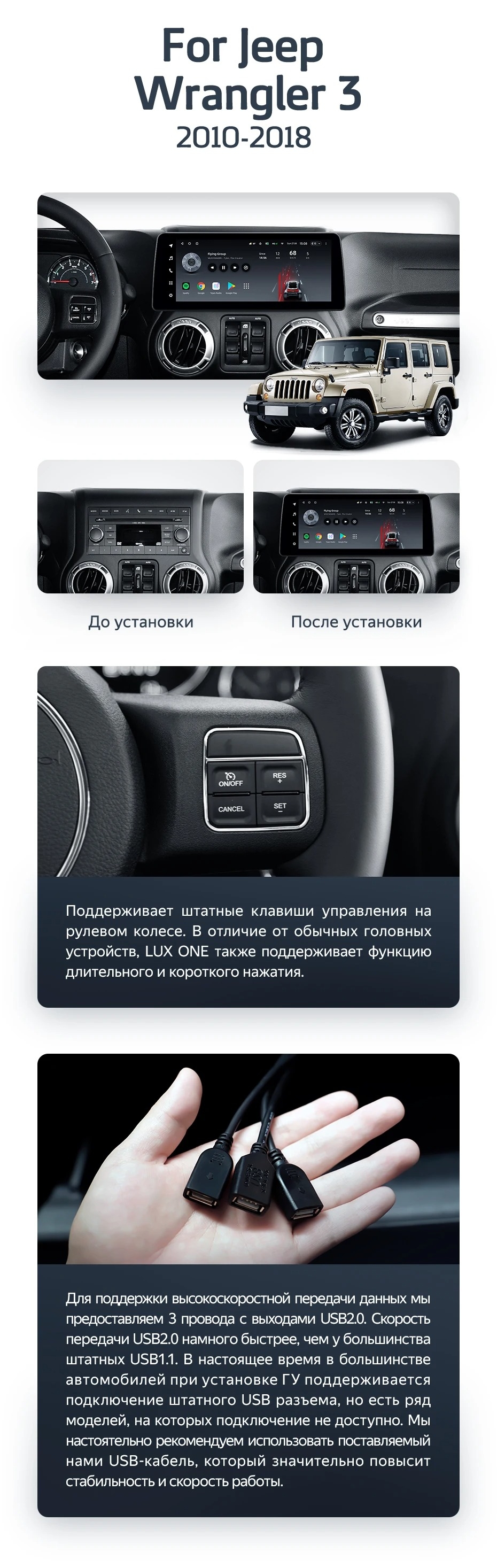 Штатная магнитола Teyes LUX ONE 6/128 Jeep Wrangler 3 JK (2010-2018) - купить всего за 47 800 руб. в интернет-магазине в Перми Teyes.com.ru. ✓ Самый лучший выбор мультимедиа ✓ Лучшая замена штатному ГУ ✓ Тел. +7 (800) 775-31-74