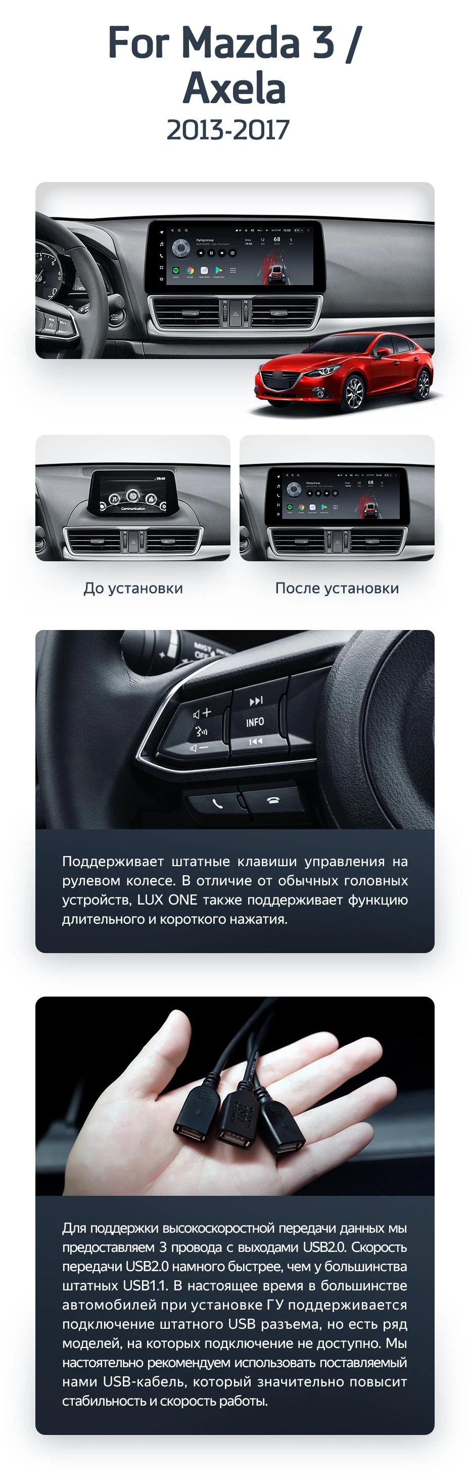 Штатная магнитола Teyes LUX ONE 6/128 Mazda 3 BM (2013-2017) Тип-B - купить всего за 53 700 руб. в интернет-магазине в Перми Teyes.com.ru. ✓ Самый лучший выбор мультимедиа ✓ Лучшая замена штатному ГУ ✓ Тел. +7 (800) 775-31-74