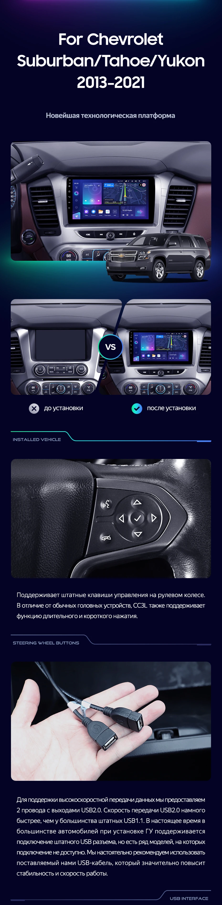 Переходная рамка Chevrolet Suburban GMT K2YC (2014-2020) / Tahoe K2UC (2013-2021) / Yukon (2014-2020) (9") - купить всего за 14 100 руб. в интернет-магазине в Перми Teyes.com.ru. ✓ Самый лучший выбор мультимедиа ✓ Лучшая замена штатному ГУ ✓ Тел. +7 (800) 775-31-74