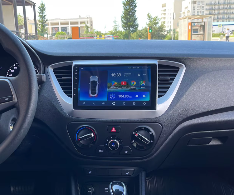 Готовый установочный комплект для магнитолы Hyundai Solaris 2 (2017-) (черный матовый) (A - без штатной камеры) 9 дюймов в штатное место, включает переходную рамку и проводку.