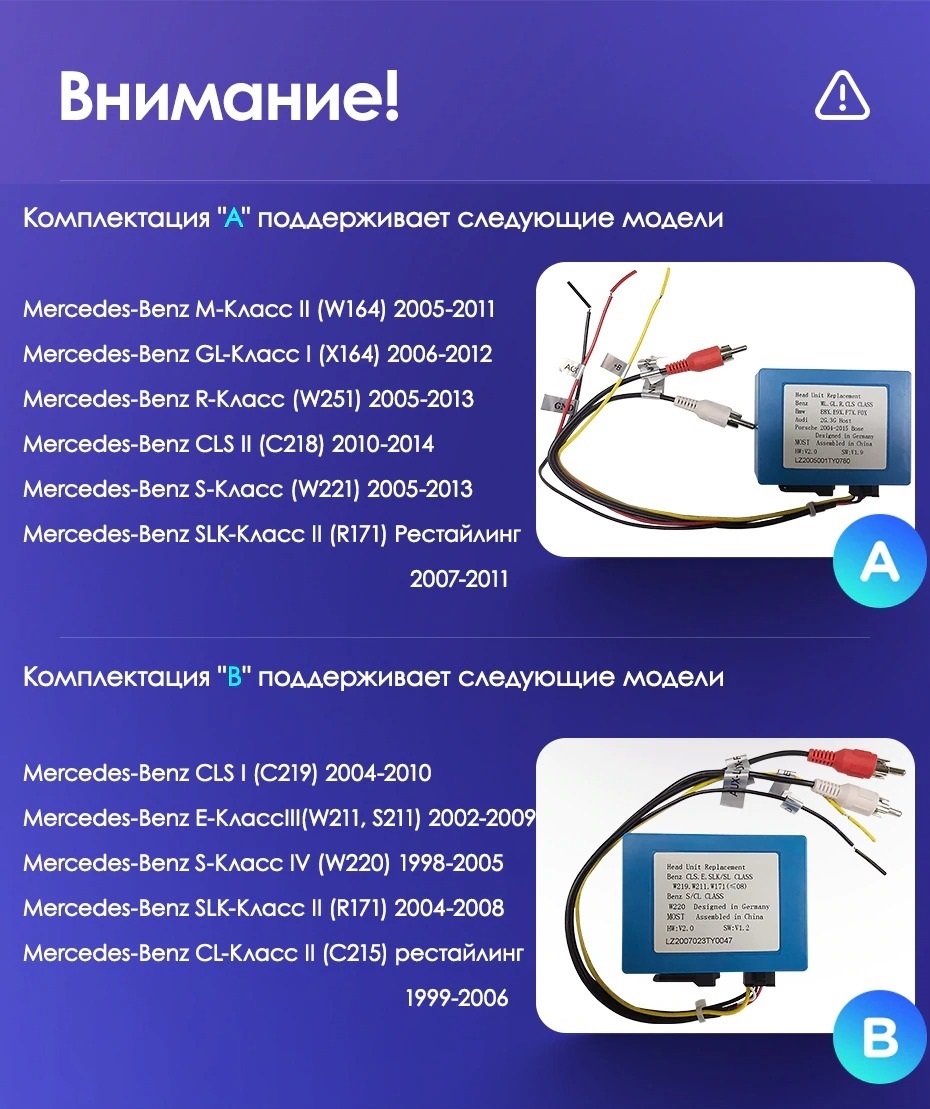 Установочный комплект для Mercedes Benz R-Class W251 R280 R300 R320 (2005-2009) включает переходную рамку и проводку.