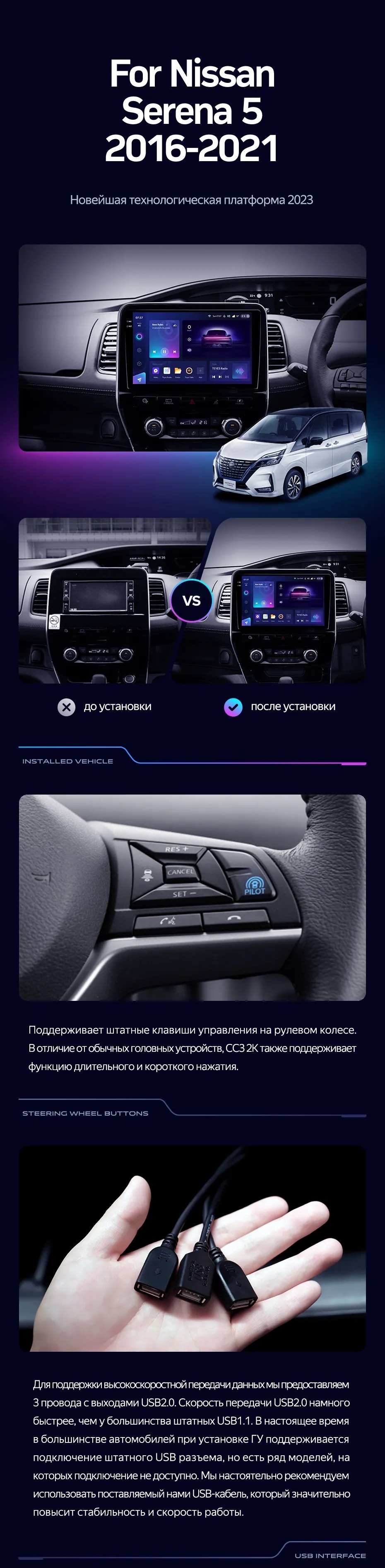 Полный комплект установки магнитолы Teyes с рамкой и проводкой можно выбрать в каталоге штатных магнитол Nissan Serena 5 V C27 (2016-2021).