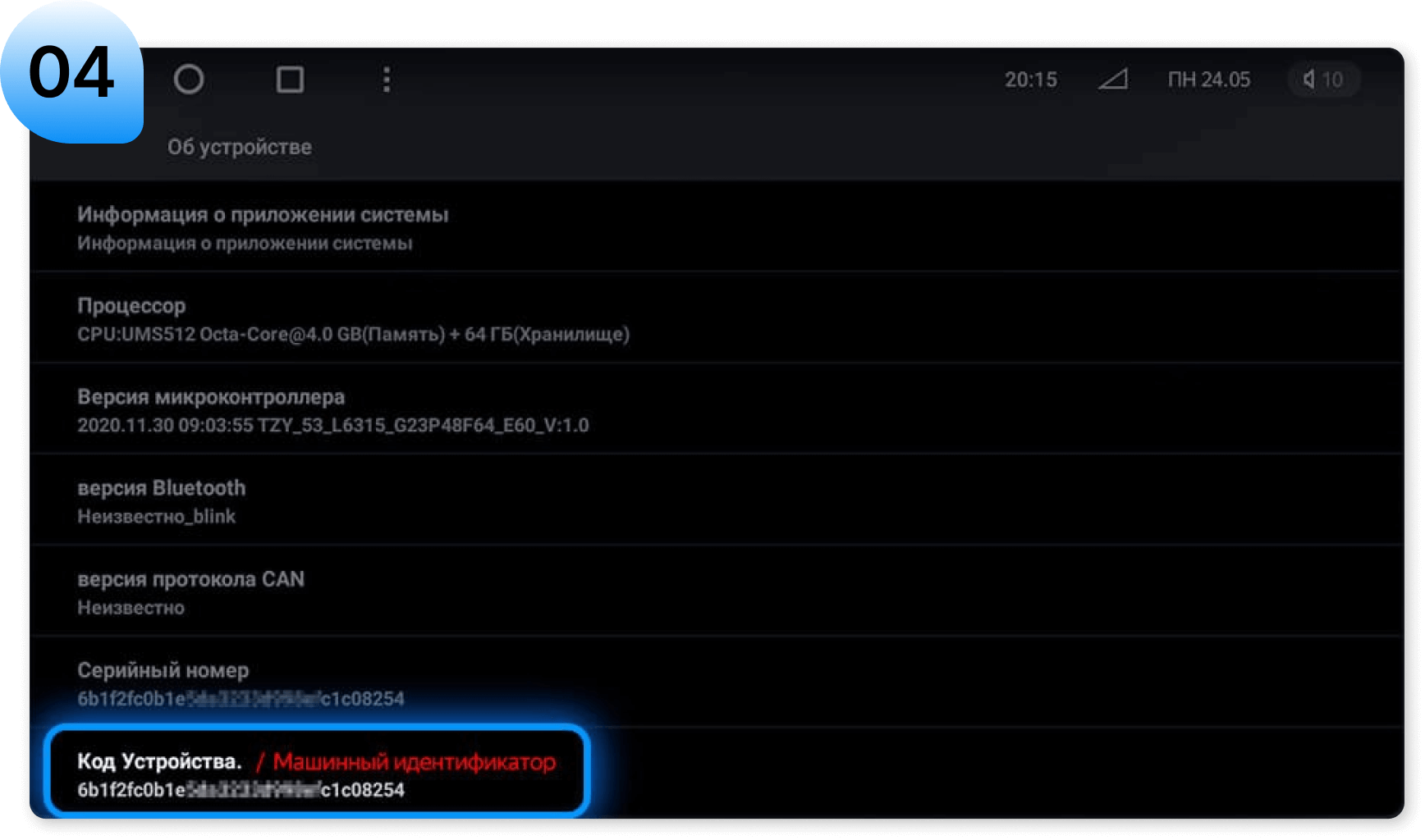 Для проверки подлинности, введите ID номер устройства